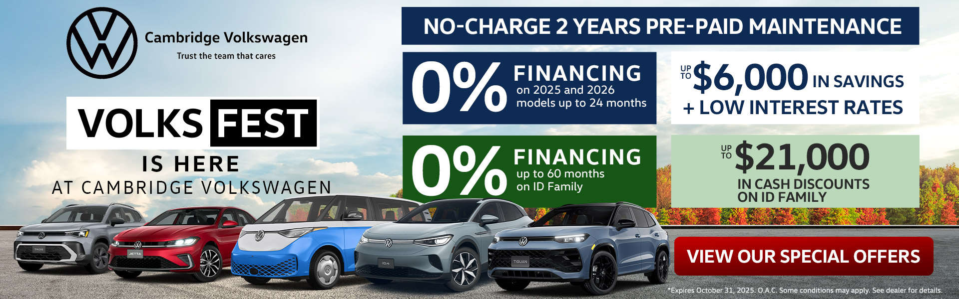 Visit vwoffers.ca or your Volkswagen dealer for details. “Volkswagen,” the Volkswagen logo, all model names and trimline names are registered trademarks or trademarks of Volkswagen AG, used under license. © 2025 Volkswagen Canada.